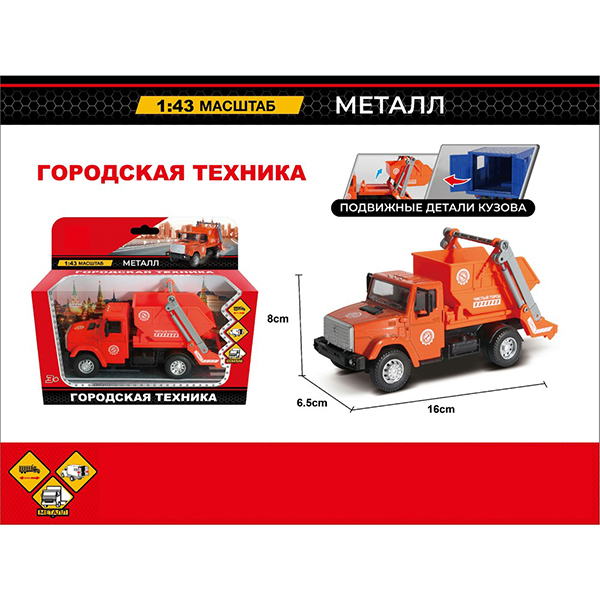 Машина металлическая ин. "Мусоровоз" в коробке 16см.
