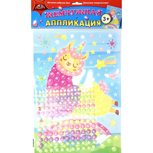 Аппликация жемчужная "Разноцветная лама"