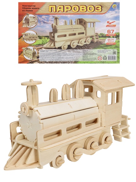 Сборная модель из дерева "Паровоз" 67 дет.