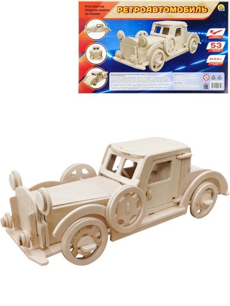 Сборная модель из дерева "Ретроавтомобиль" 70 дет.