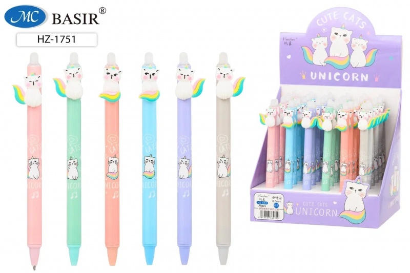 Ручка автоматическая синяя пиши-стирай "Кот-Единорог" 0,5мм