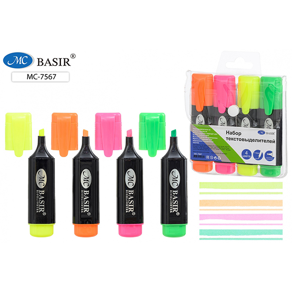 Набор текстовыделителей 4цв. флюоресцентные