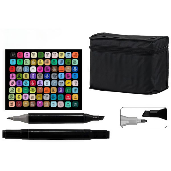 Набор скетчмаркеров двухсторонние 1,0-7,0мм на спиртовой основе 80цв. в сумке на молнии