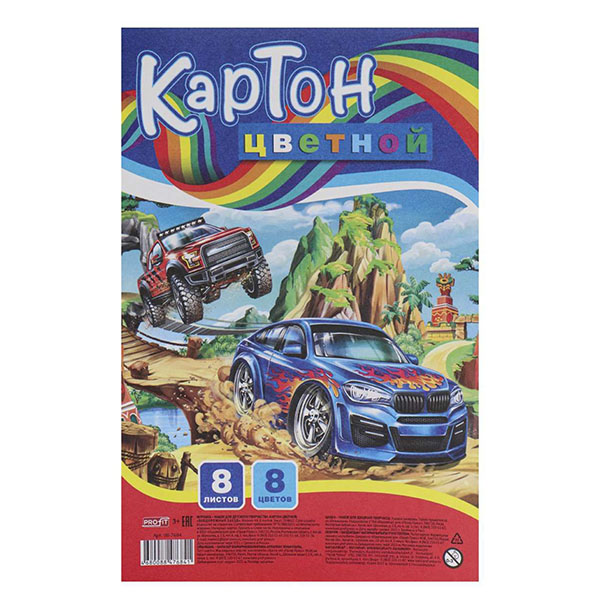 Цветной картон 8л.8 цв А4 "Внедорожный заезд"