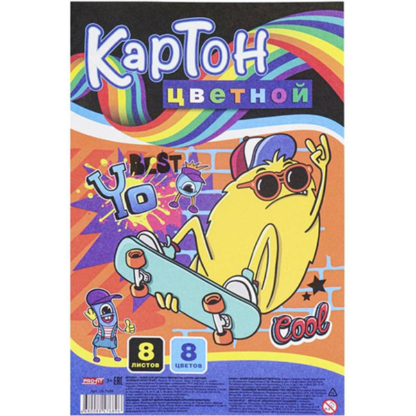 Цветной картон 8л.8 цв А4 "Клёвый монстрик" мелованный