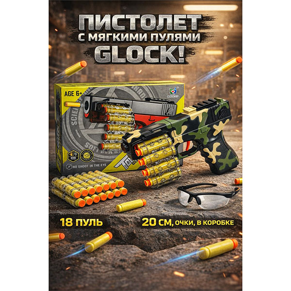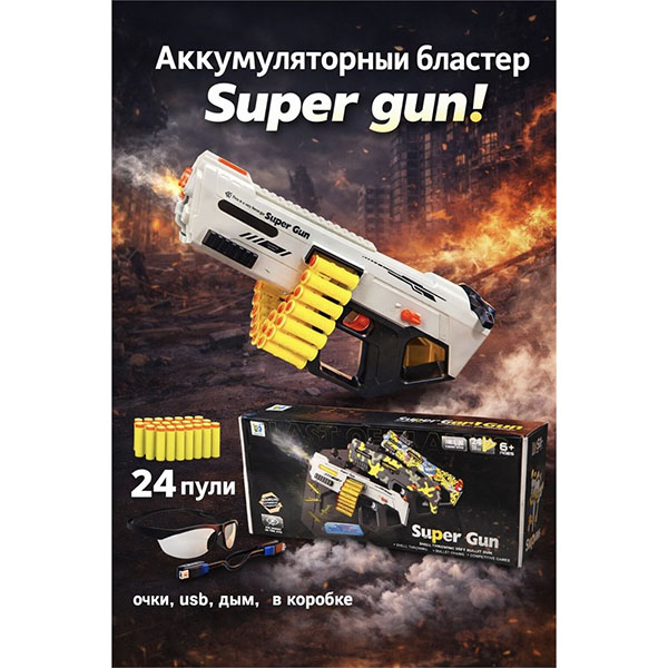 Пистолет с глушителем стреляет гидропулями (500 пулек, USB зарядка,очки)