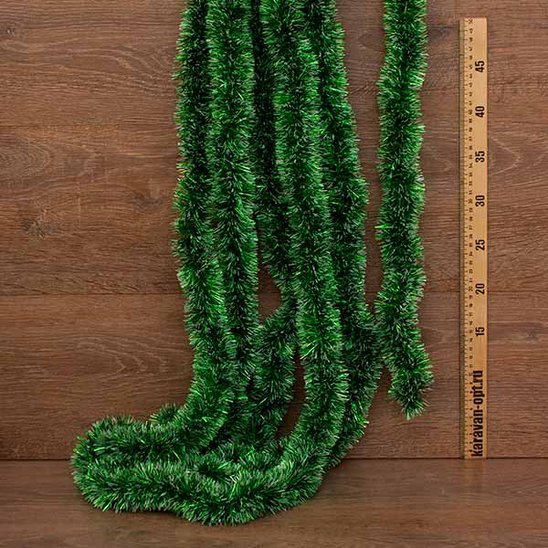 н.г. Мишура новогодняя 2м*5см. "Иней" с белыми кончиками зелёная