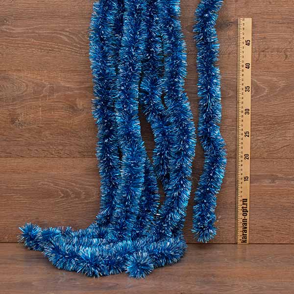 н.г. Мишура новогодняя 2м*5см. "Иней" с белыми кончиками синяя