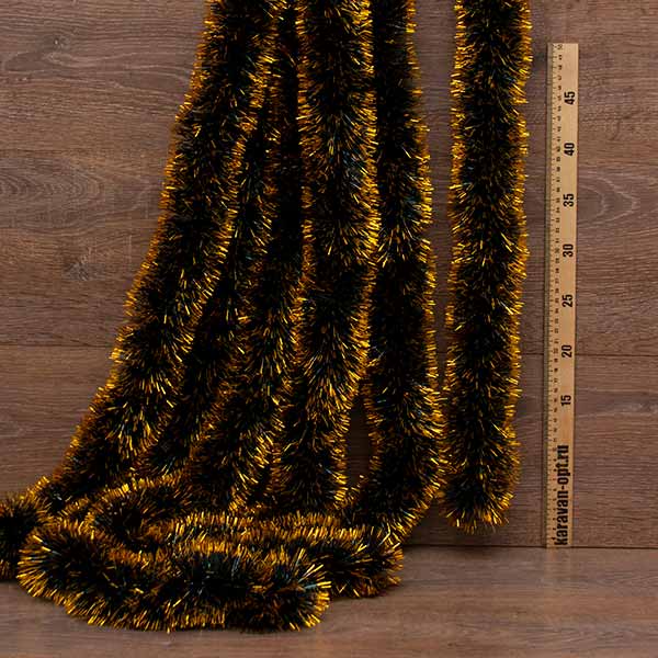 н.г. Мишура новогодняя 2м*7см. "Норка" зелёная с золотыми кончиками
