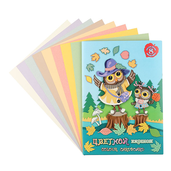 Цветной картон двухсторонний А4 8л. 8цв. "Совки гуляют"