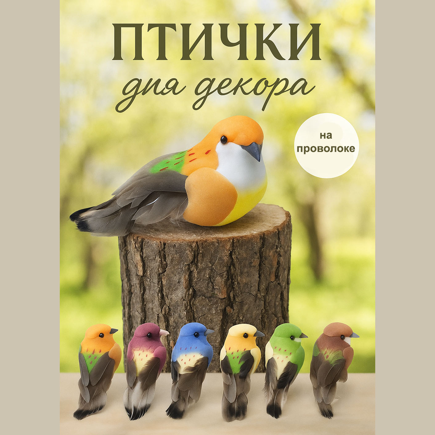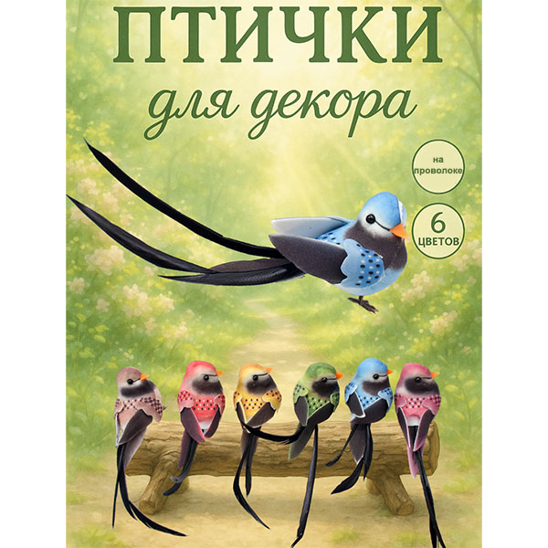 Фигурка из пенопласта на проволоке "Птичка" 8,5х3см. 6видов