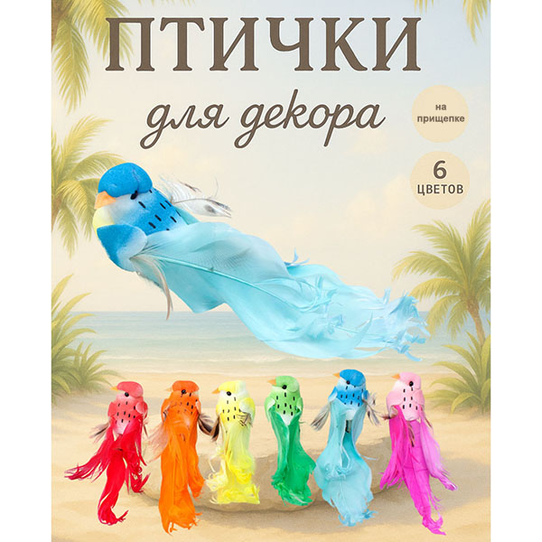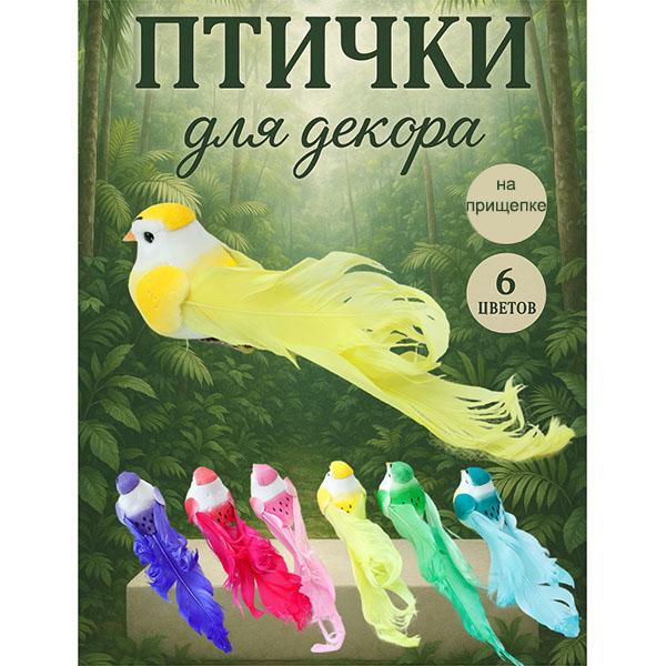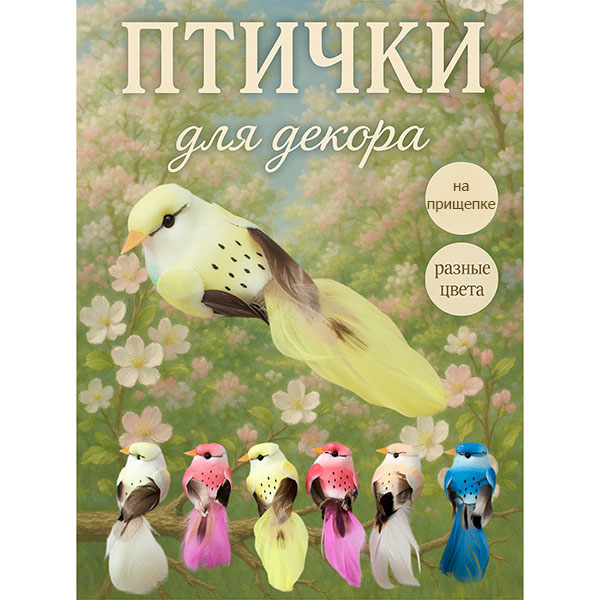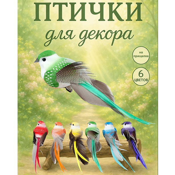 Фигурка из пенопласта на прищепке "Птичка" 14х3,5см. 6видов