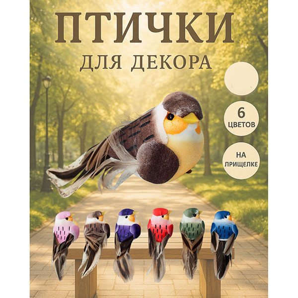 Фигурка из пенопласта на прищепке "Птичка" 12х3см. 6видов