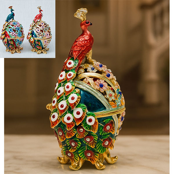 Шкатулка из металла "Яйцо с павлином" в подарочной коробке 11см. 3вида
