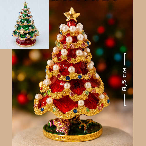 Шкатулка из металла "Ёлка" в подарочной коробке 8см. 2вида