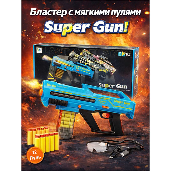 Пистолет с глушителем стреляет гидропулями (500 пулек, USB зарядка,очки)