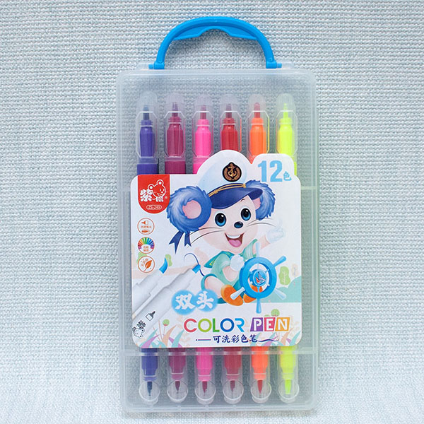 Фломастеры 12цв. двухсторонние вентелируемый колпачок, в пластиковой коробке
