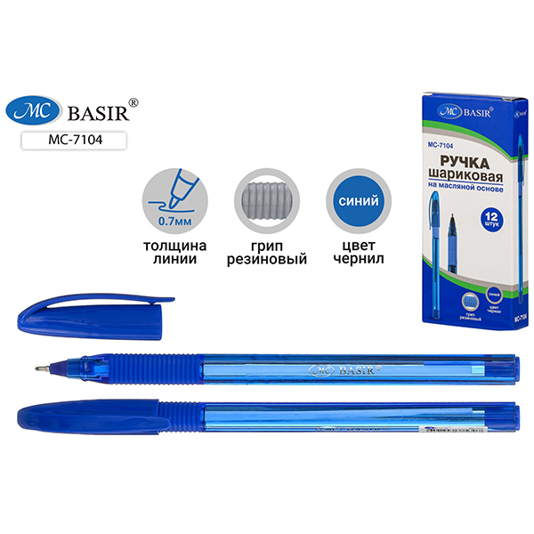 Ручка шариковая на масляной основе синяя, 0,7мм
