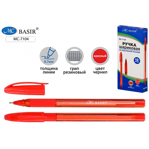 Ручка шариковая на масляной основе красная "DIGNO" 4G 0,7мм.