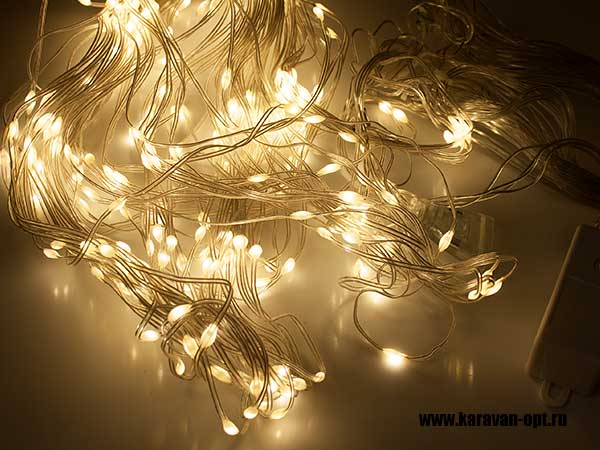 н.г. Гирлянда электрическая LED штора 3*2м 200 лампочек, тёплый белый