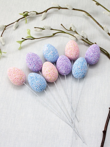 Сувенир пасхальный "Яйцо на проволоке" 3*4.5 см (9шт.) 20см. 2вида