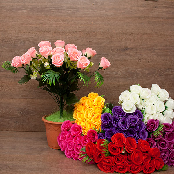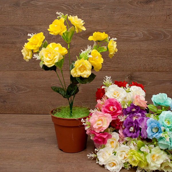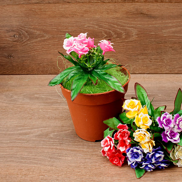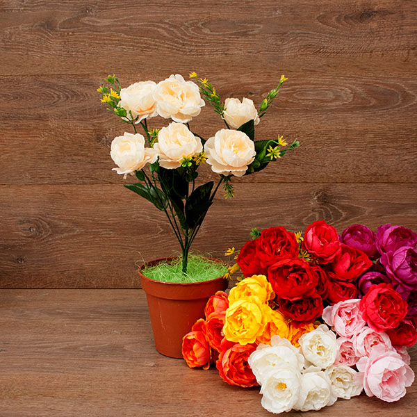 Цветы пластиковые Розочки 5гол. 21см.