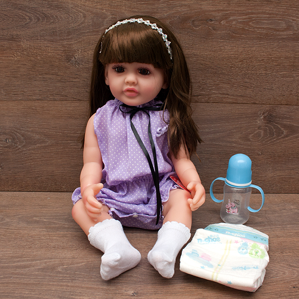 Кукла в одежде, c аксессуарами (памперс+бутылочка) 55см.