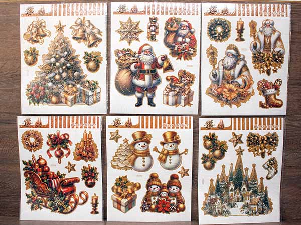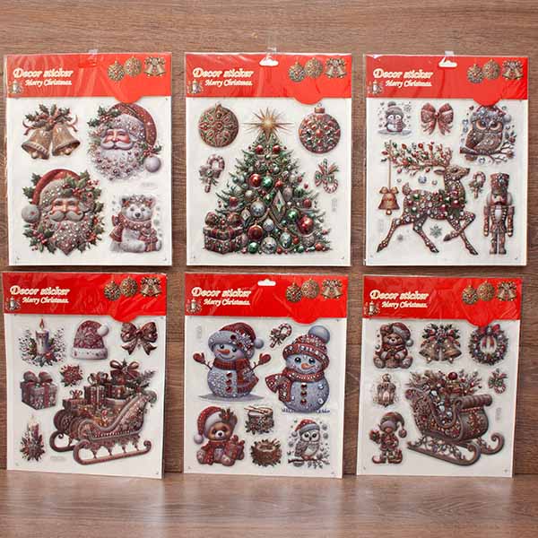 н.г. Наклейка объёмная силиконовая "Новогодняя" 31,5*42,5 6видов