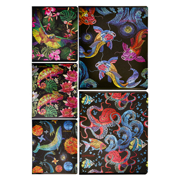 Тетрадь 48л. кл "Чёрный микс" 5 дизайнов, цветн. мелов. обл.