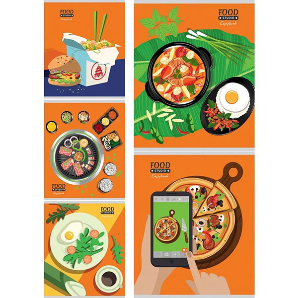 Тетрадь 48л. кл. "Коллаж фастфуд" цветная мелованная обложка, лён