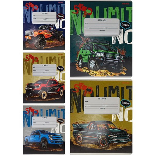 Тетрадь 96л. кл. "Разные авто-2" 5 дизайнов, лён