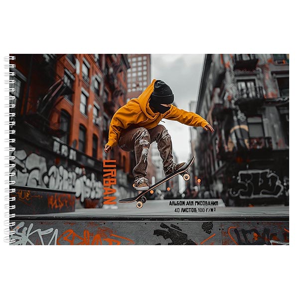 Альбом для рисования 40л. "Скейтборд и граффити" евроспираль