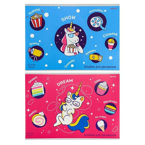 Альбом для рисования 40л. "Волшебные животные-1" скрепка, мелованная обложка
