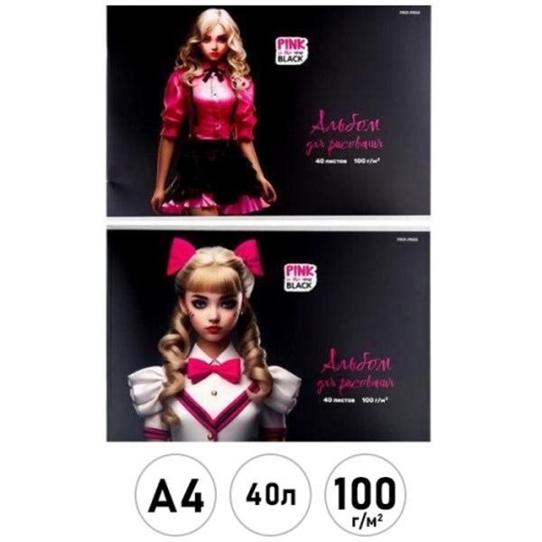 Альбом для рисования 40л. "PINK&BLACK" скрепка, 2дизайна