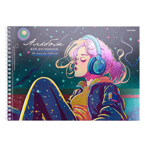 Альбом для рисования 40л. "Девушка в наушниках" евроспираль