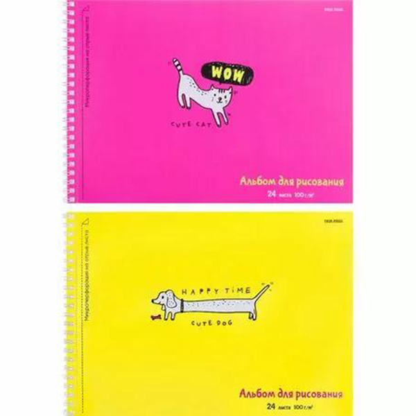 Альбом для рисования 24л. "Рисунки домашних животных" евроспираль, 2 дизайна