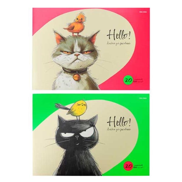 Альбом для рисования 20л. "Котики с птичками" срепка, 2дизайна, лён
