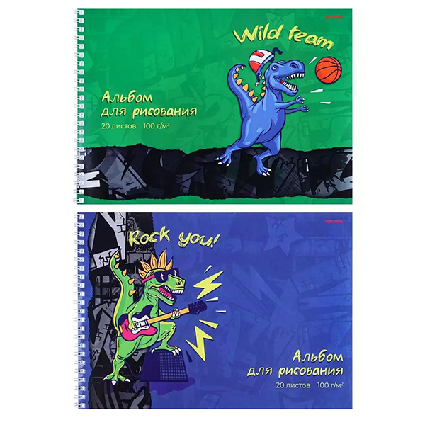 Альбом для рисования 20л. "Смешной динозавр" евроспираль, 2дизайна