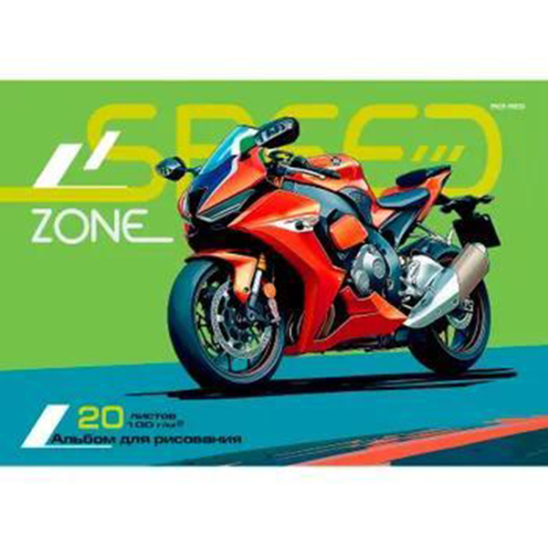 Альбом для рисования 20л. "Спортивный мотоцикл" евроспираль