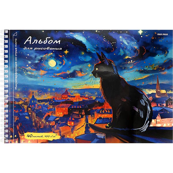 Альбом для рисования 40л. "Котик и ночной город" евроспираль
