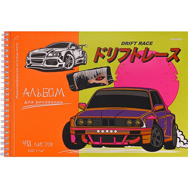 Альбом для рисования 40л. "Автомобиль в Калифорнии" евроспираль, 2 дизайна