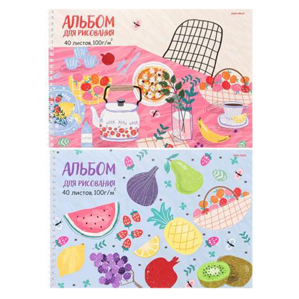 Альбом для рисования 40л. "Летнее застолье" евроспираль, 2 дизайна