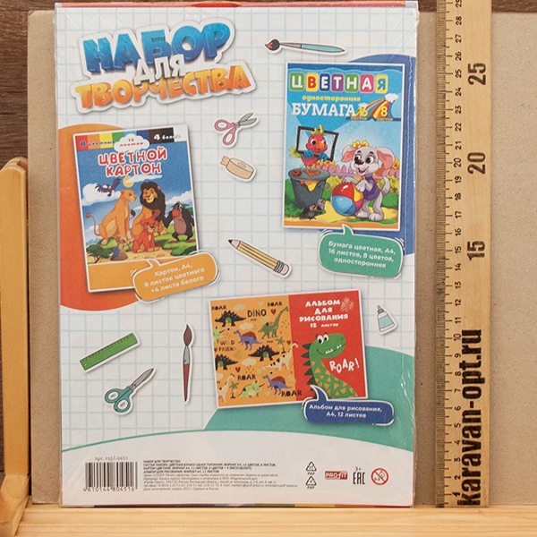 Набор для творчества (цветной картон+цветная бумага+альбом)