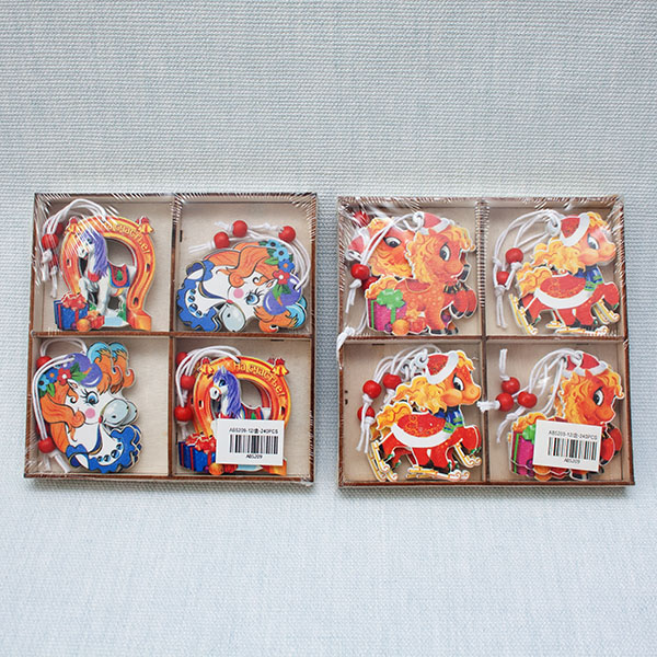 н.г. Набор подвесок новогодних деревянные (12шт.в наборе) "Лошади" 2вида