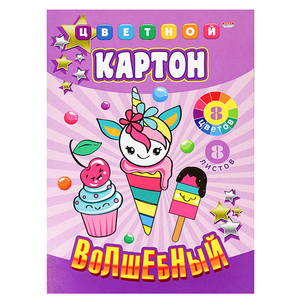 Цветной картон 8л. 8цв. А4 "Сладкий десерт" волшебный (золото+серебро)