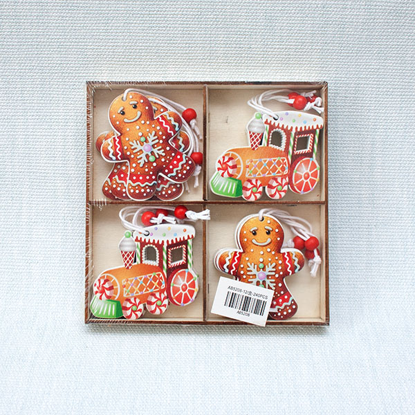 н.г. Набор подвесок новогодних деревянные (12шт.в наборе) "Паравоз и Печенье"