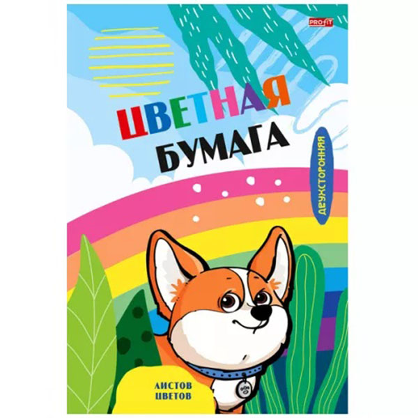 Цветная бумага двухсторонняя 16л. 8цв. "Корги и радуга"