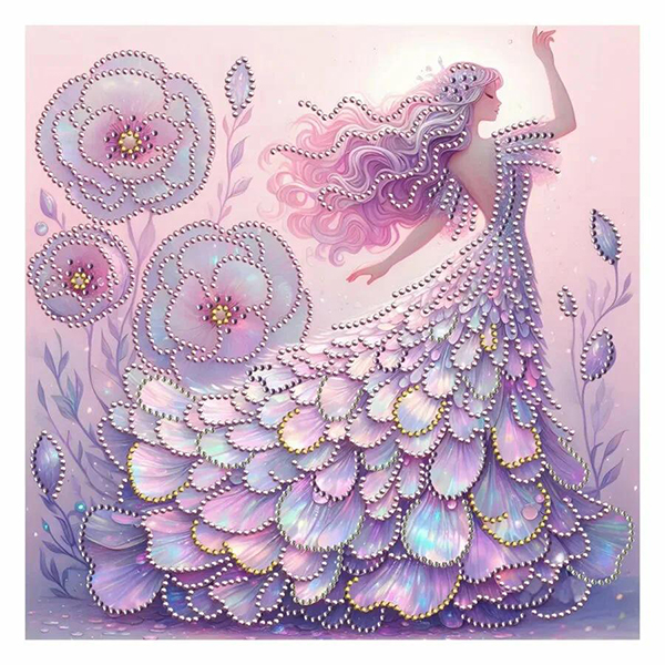 Мозаика алмазная 30*30см."Фея в нежном платье" с подр.,с част.зап.