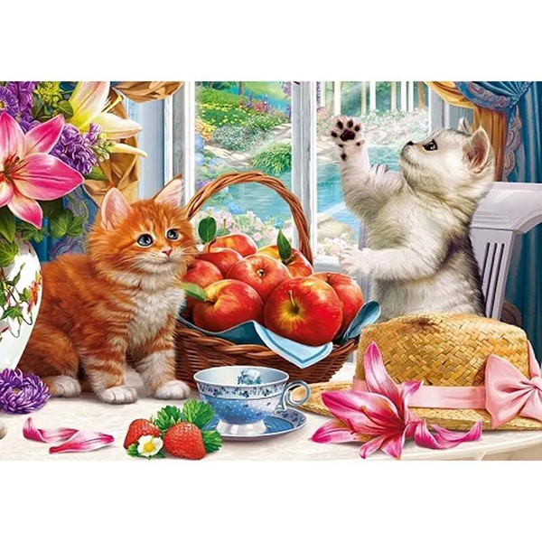 Мозаика алмазная 22*32см."Котёнок и натюрморт" с подр.,с полн.зап. 20цв.