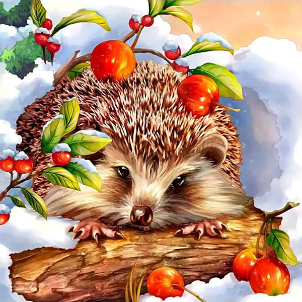 Мозаика алмазная 20*20см."Ёжик с яблочками" с подр.,с полн.зап. 24цв.